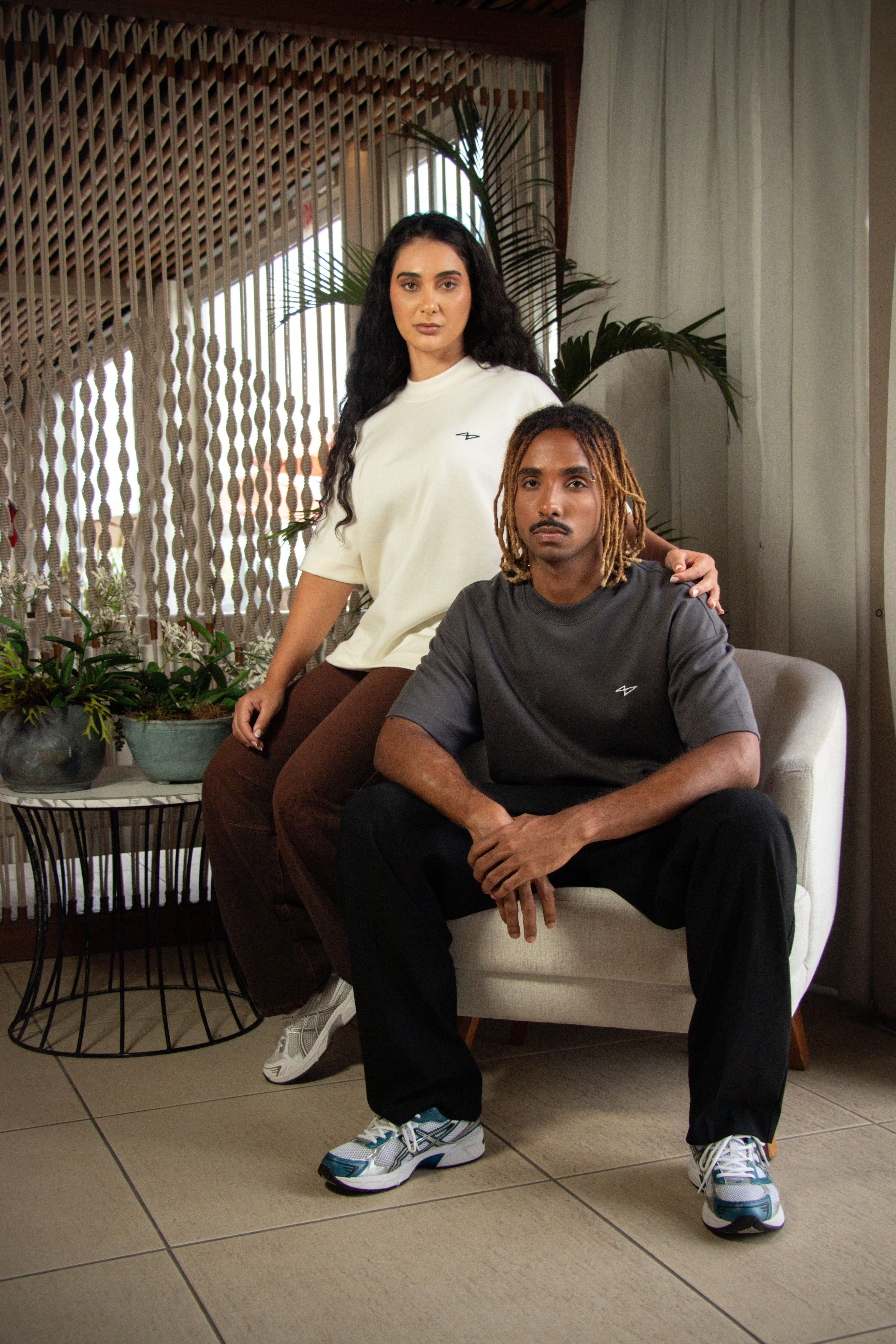 Desenvolvida em malha premium Soft Double 300 g/m², a peça combina estrutura, conforto e uma estética minimalista que valoriza a arte abstrata da colaboração.